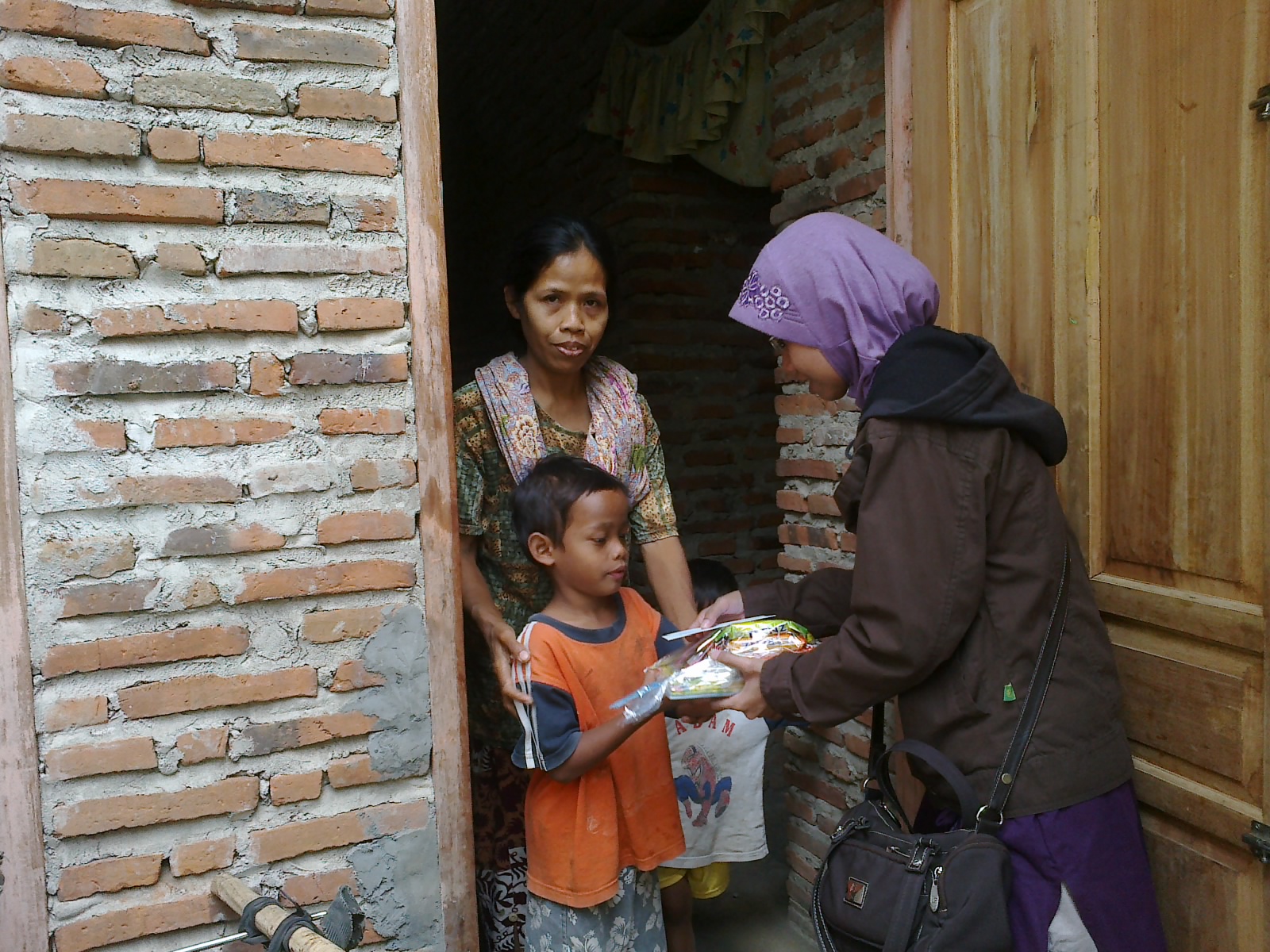 Bingkisan (alat tulis+snack) beserta santunan sesuai rencana kami bagikan dengan mendatangi langsung sasaran. Dari infaq yang terkumpul, Alhamdulillah dapat kami bagikan pada 30 anak yatim/piatu/dhuafa yang berada disekitar RBA dan lingkungan tempat tinggal pengurus RBA. Pukul Sembilan pagi 14 orang panitia (Pengurus dibantu teman-teman RBA) kami bagi ke dalam lima tim yang akan langsung mendatangi sasaran yang tersebar di wilayah Pangkah-Slawi-Adiwerna. Kurang lebih pukul sepuluh kami mulai bergerak ke wilayah masing-masing dan sekitar satu jam acara pembagian dari masing-masing tim sudah dapat diselesaikan, panitia dapat langsung kembali kerumah dan bersiap untuk bertemu lagi sore harinya di acara Buka Bersama RBA Tegal.